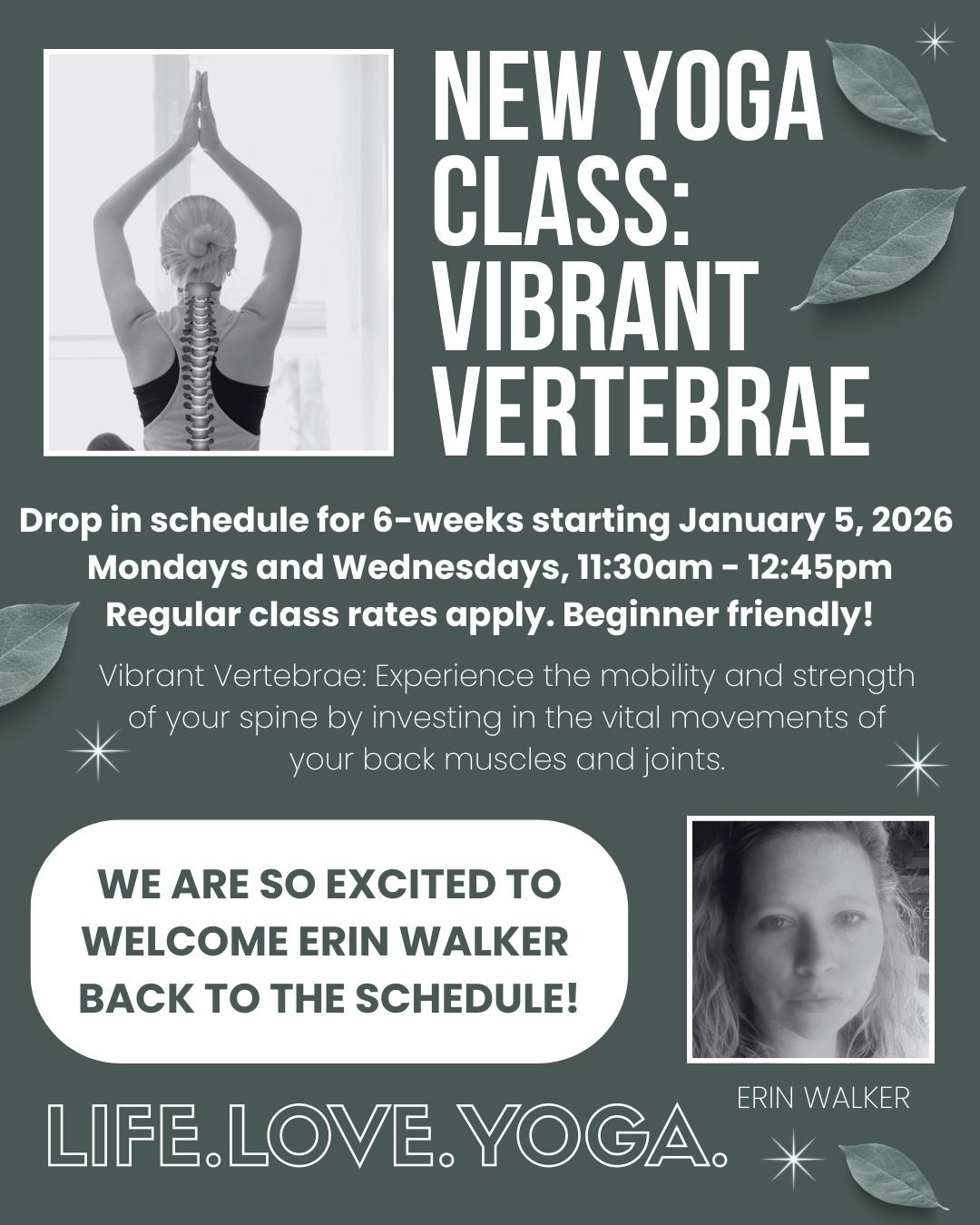 Experience the mobility and strength of your spine by investing in the vital movements of your back muscles and joints. This series of classes will explore flexion, extension, lateral motion, and rotation (twists). We will approach these movements with kindness, meeting our bodies where they are each day. A portion of each class will use movement and stillness to create space and strength from the roots of the tailbone to the crown of the head. Each class will be a stand-alone experience, but consistency may provide greater benefits. Please join me in increasing your vertebral vibrance!